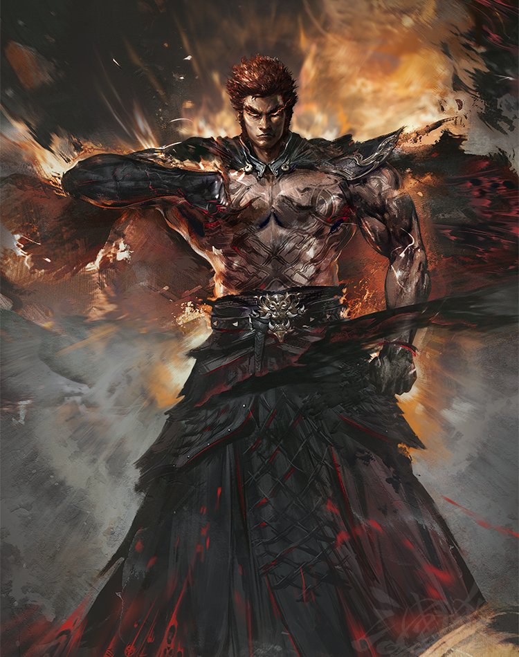 出牌阶段,你可以入魔并选择一名其他角色,你与其成为“狂”角色,每回合对彼此首次造成的伤害+1;击败对方后,获得对方所有“炁”。“狂”角色死亡后,你重新指定。入魔后,每轮结束时,若本轮你未造成过伤害,你失去1点体力。 夺炁[qì]:锁定技,一号位首个回合开始前,你执行一个不能使用延时锦囊牌的额外出牌阶段。所有角色的初始手牌称为“炁”。你每回合对一名角色首次造成伤害后,你获得其一张“炁”。 若你使用的上一张牌为“炁”,你可以将一张装备牌当指定相邻角色为目标的火【杀】使用;否则,你可以将一张锦囊牌当【决斗】使用。